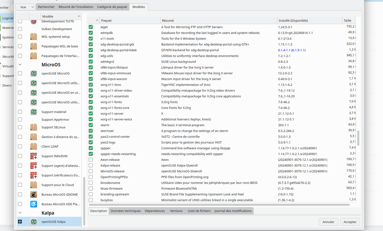 En konsole( dans KALPA) , avec " zypper research xorg "  , j'ai la liste de tous les " x11 " disponibles +- 15